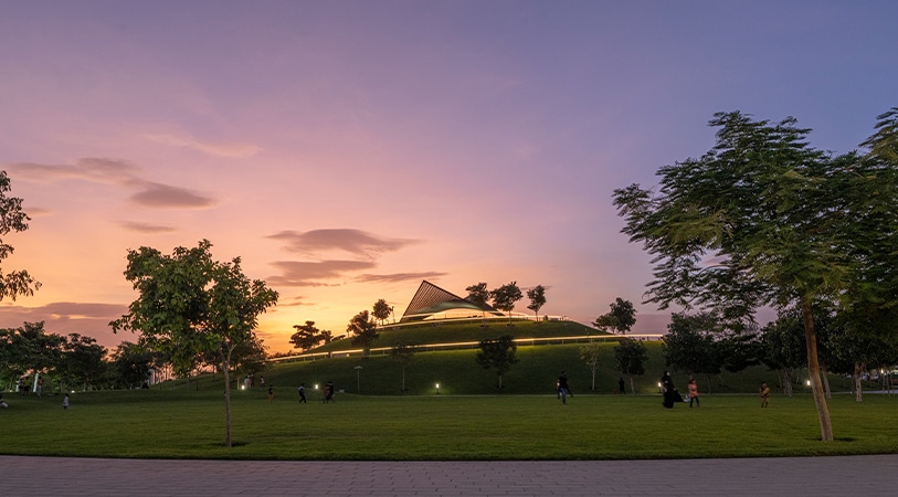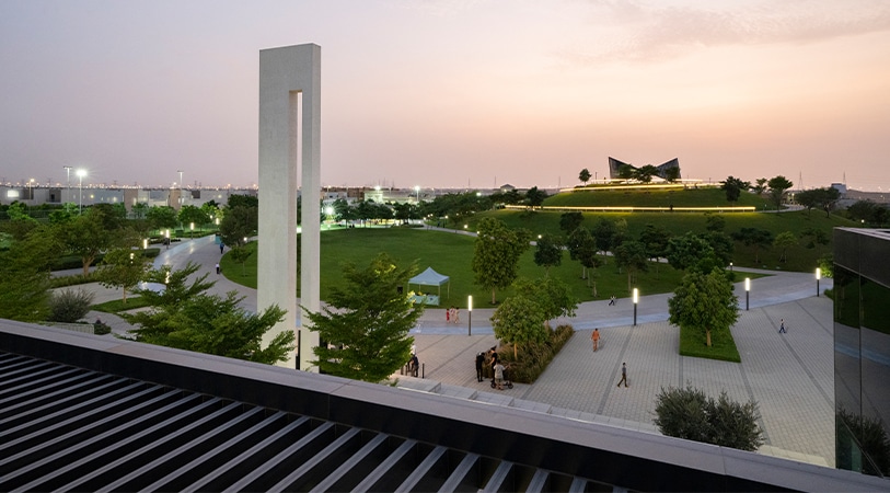 The lushly landscaped Nasma Central Park offers a host of sporting facilities, including a five-a-side football pitch, basketball and tennis courts, jogging and cycling tracks and much more. The centrepiece of Nasma Central Park is a manmade hill, which offers remarkable views of the community and the nearby Sharjah Mosque.
